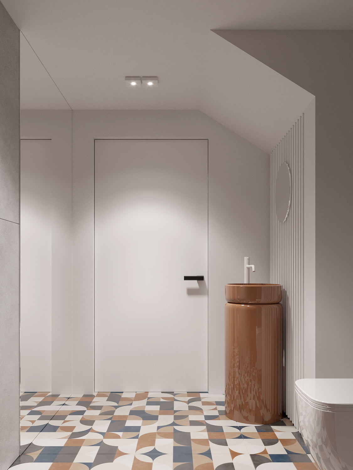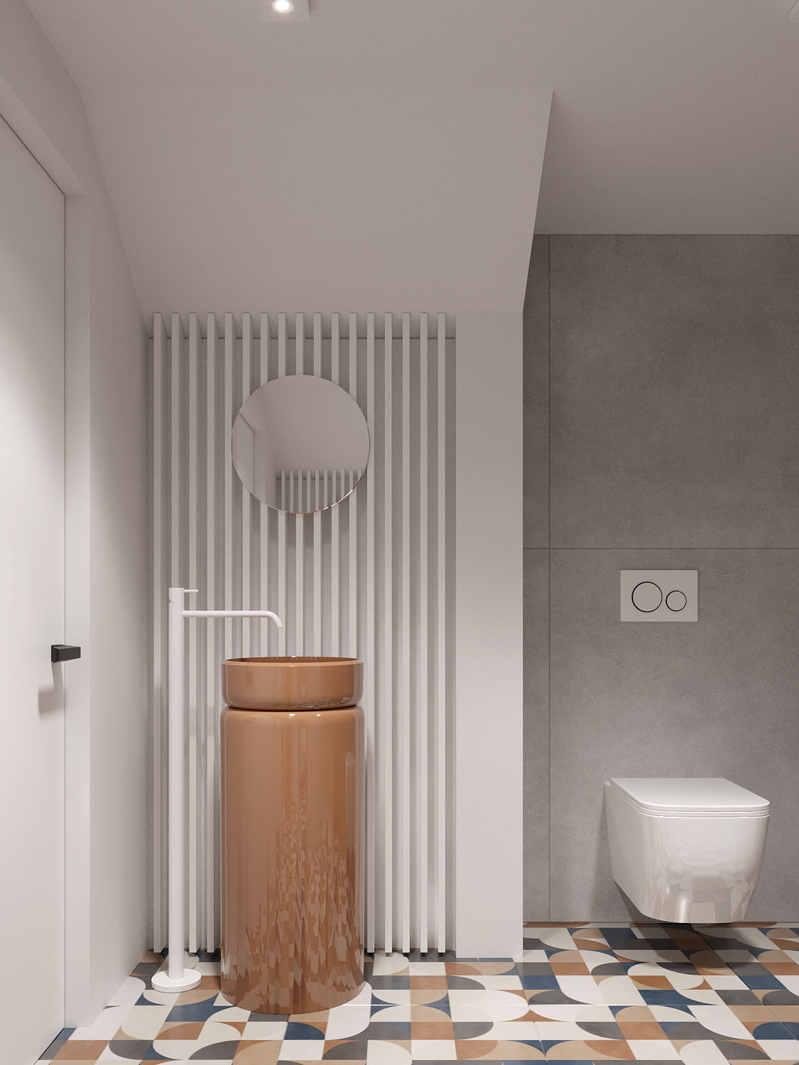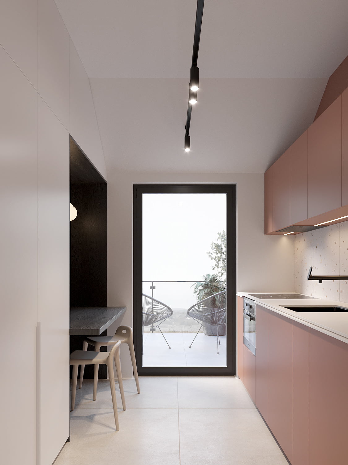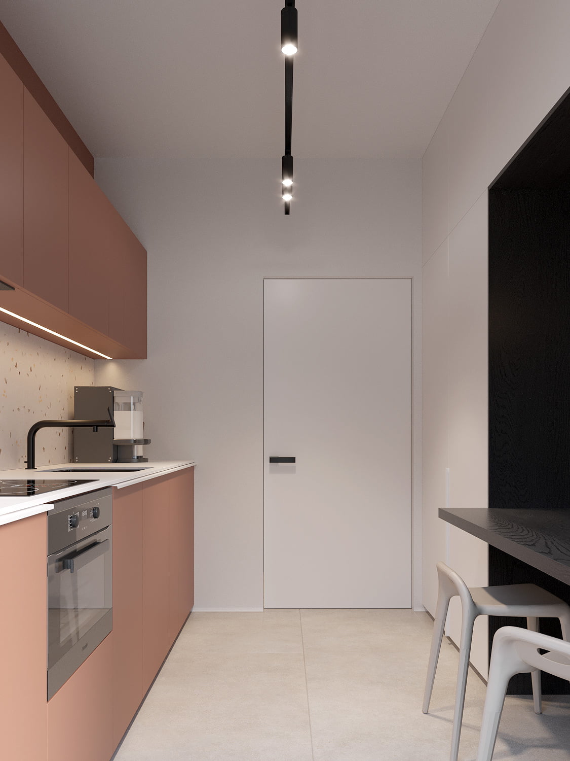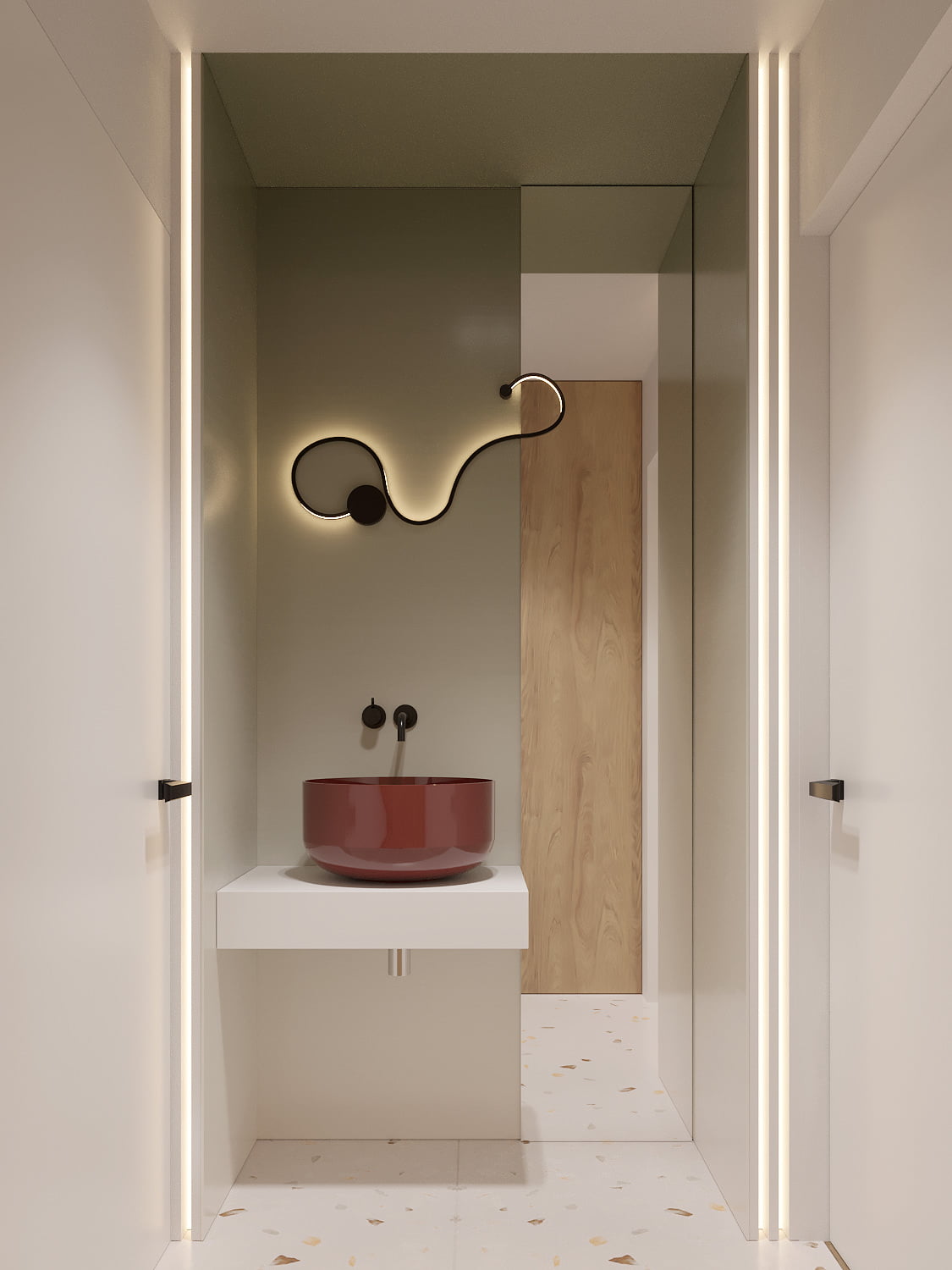 Nowoczesna aranżacja przestrzeni biurowej. W częściach wspólnych pojawiają się industrialne elementy – metalowe nogi stołów i oświetlenie, współgrające z nowoczesnymi, prostymi liniami mebli i wykończenia. Funkcjonalne biura na piętrze zapewniają przestrzeń do kreatywnej pracy z minimalistycznym designem, podkreślającym profesjonalizm i kreatywny charakter marki. Bazą stały się odcienie czerni i bieli, przełamane akcentami w kolorze głębokiej zieleni – korespondujące z otoczeniem budynki, oraz rdzawej czerwieni – wpisanej w tożsamość marki.